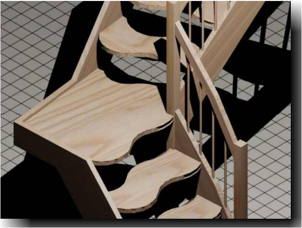 Stufenvorderkante und Hinterkante frei definierbar. Setzstufen ebenso anpassbar. Weitere Krümmlingsanpassungen. |
