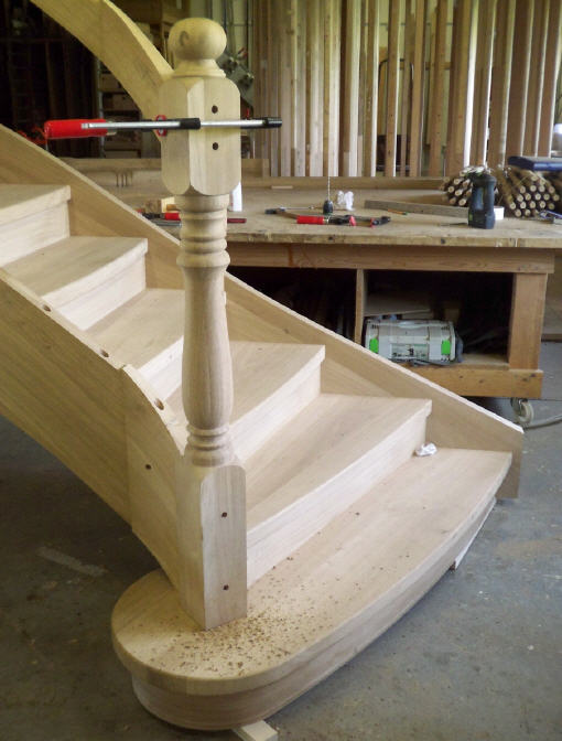 AICADstair bietet die Möglichkeit, Krümmlinge (stehend, liegend) im Grundriß zu konstruieren, seitlich abzuwickeln und 3D darzustellen. Als zusätzliche Abwicklungen können Verstreckungsschablonen, Mehrschichtschablonen (z.B. große Radien) ausgegeben werden. Handlaufüberhöhung mit verschiedenen Profilen sind optional erhältlich. Alle Daten können als Schablonen 1:1 gedruckt werden oder direkt an CNC-Maschinen übergeben werden. Bei Handlauftragenden Treppen und Stattelwangen können ebenfalls Krümmlinge konstruiert und abgearbeitet werden.